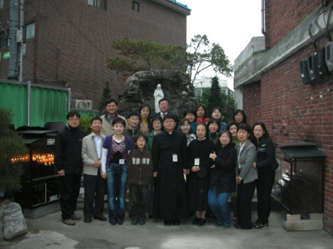 미사 후 성모상 앞에서 한 방 찍었습니다.